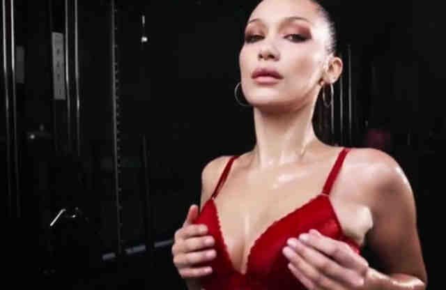 Bella Hadid kırmızı iç çamaşırıyla kamera karşısında!